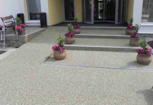 Zalety: możliwość połączenia z innym materiałem na powierzchniach pionowych (tynki, płytki i inne). Za pomocą wykorzystanego szalowania powstaje krawędź powierzchni.